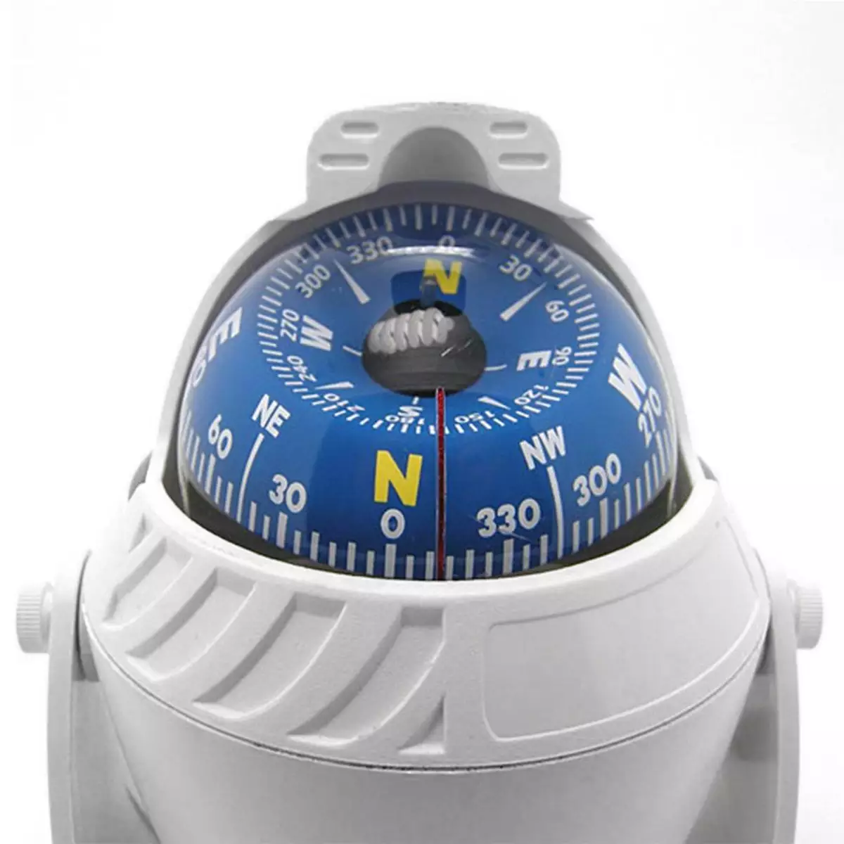 Bússola de sobrepor para embarcações de pequeno e médio porte, com base móvel, de fácil instalação, fixada por parafuso ou fita adesiva, fabricada em PVC de alta resistência ideal para suportar as adversidades do ambiente marinho.
